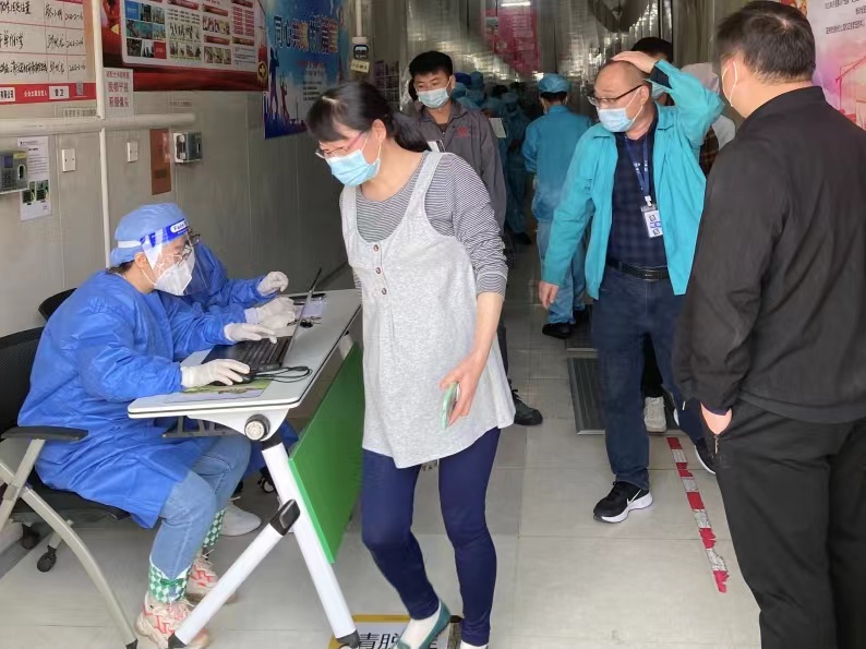 及时开展心理疏导,封控期间部分员工情绪起伏较大,公司每日开展有针对性的员工访谈和对话活动,为员工舒缓情绪、排忧解难。组织义工志愿者协助开展核酸检测。按照“四天四检”的要求,工会义工连续5天忙碌在宿舍和生产现场,协助做好核酸检测工作。