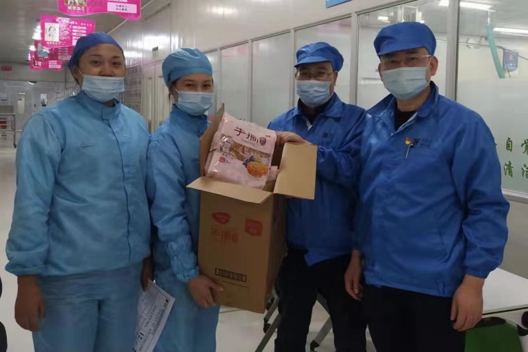 为避免人员减少时空交集几率,后勤部为员工订餐,送到生产车间供员工分散取用。为改善伙食质量,精密公司自4月3日起每天下午三点为员工提供点心,让员工感受到公司的温暖。