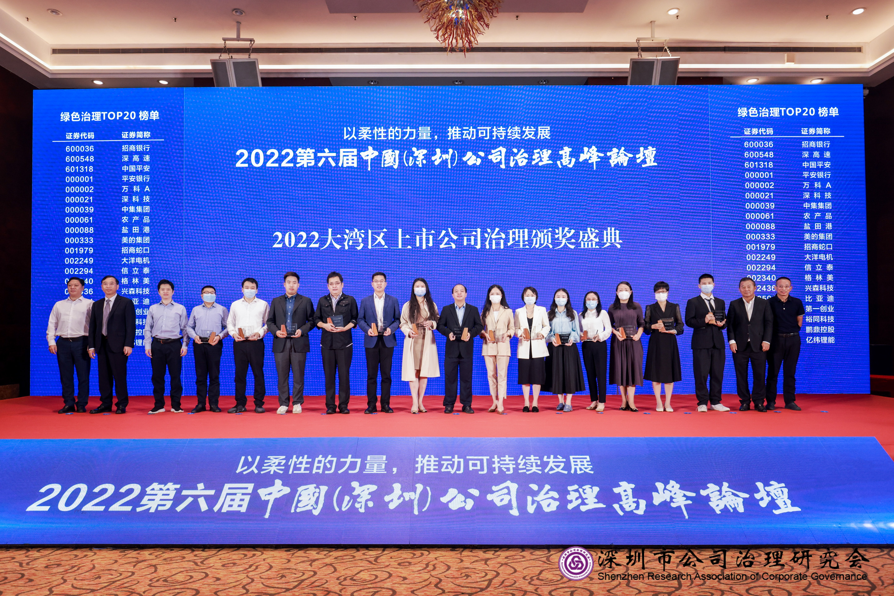 11月25日,由中国公司治理研究院、深圳证券交易所、深圳市地方金融监督管理局、福田区人民政府指导,深圳市公司治理研究会主办的第六届中国(深圳)公司治理高峰论坛在深圳举行。PA集团官网以出色的公司治理实践,荣膺“2022大湾区上市公司绿色治理Top20”奖项。