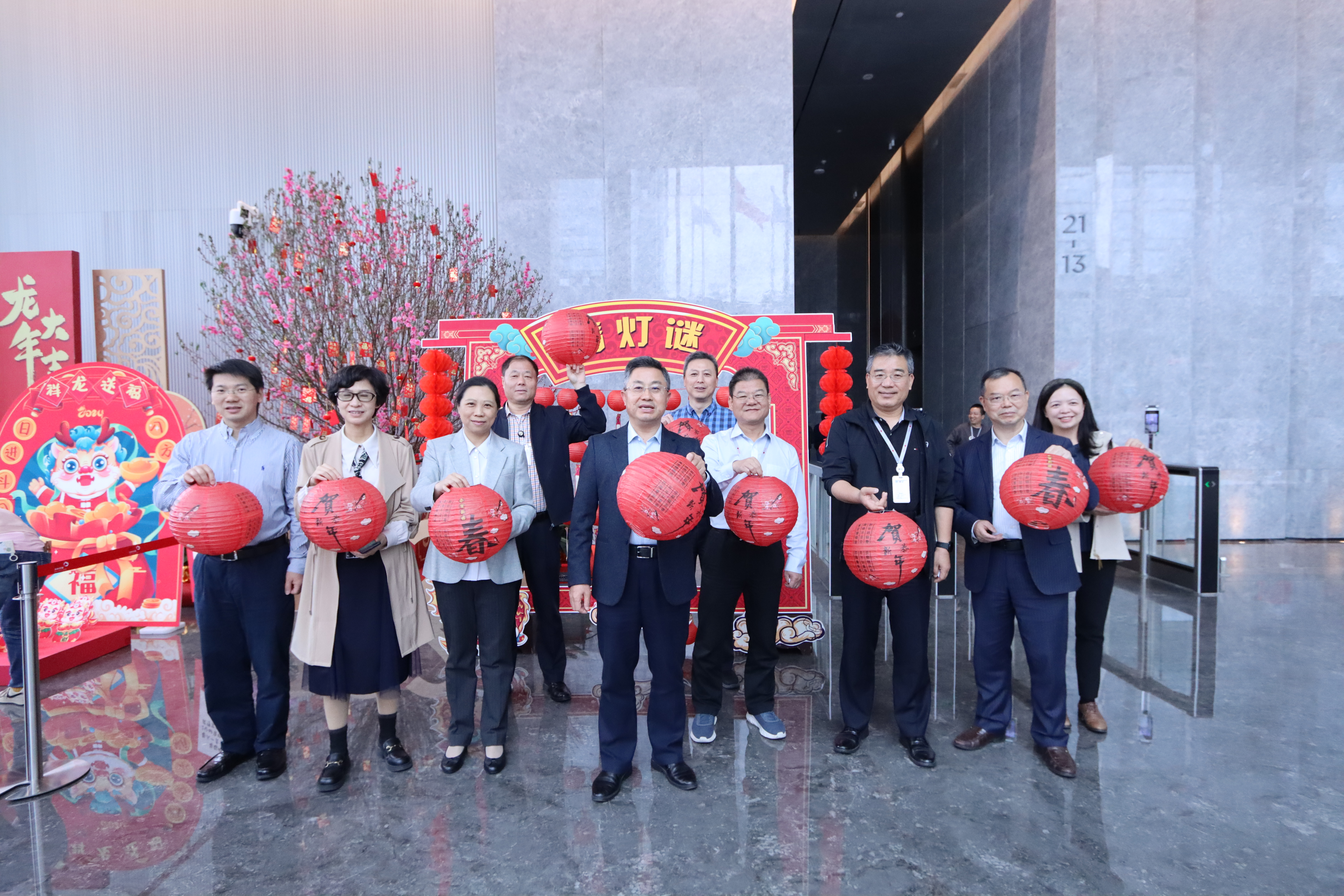 2月23日,PA集团官网总部大堂流光溢彩,春味浓郁,一场热闹喜庆的元宵灯谜会精彩呈现。公司党委书记、董事长韩宗远,党委委员、高级副总裁周庚申,高级副总裁于化荣,党委委员、高级副总裁莫尚云,监事会主席肖涧毅,党委委员、总裁助理曹岷、周浩、彭秧,董事会秘书钟彦及工会副主席邱胜来到活动现场与广大员工一起猜灯谜、赏花灯、玩游戏,共同庆祝元宵佳节。中国电子专职董事、PA集团官网董事刘汉清应邀参加。