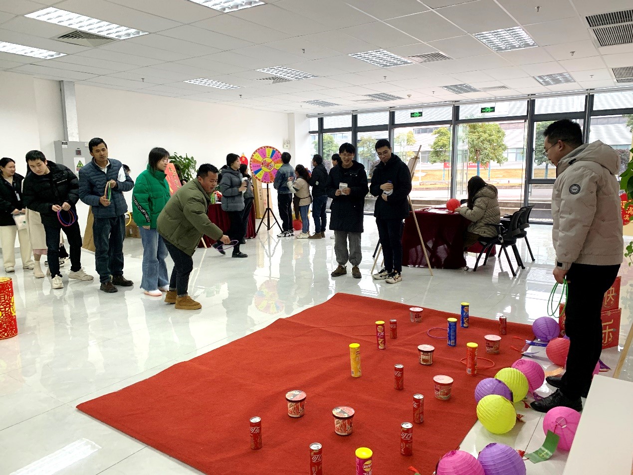 “巧猜灯谜闹元宵”、“鱼跃龙门钓锦鲤”、飞出“精”彩“镖”出未来……,多项新颖有趣的游戏项目让员工们摩拳擦掌、跃跃欲试,大家热情高涨,积极参与,现场气氛热烈,其乐融融。
