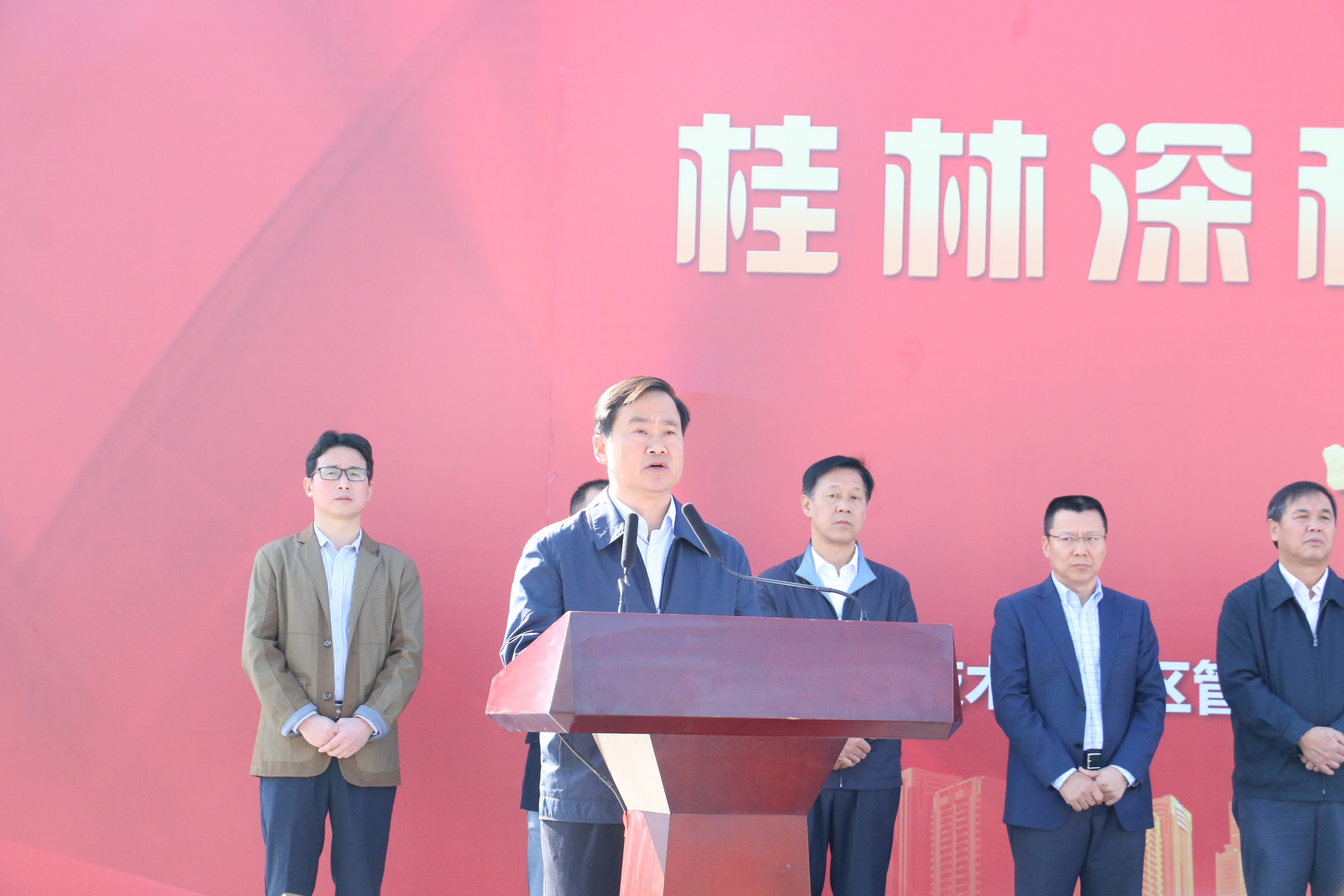 桂林市长秦春成讲话,强调桂林近年来致力于重振工业雄风,着力推动产业做强升级,推动了新一代信息技术、新能源、新材料、节能环保等新兴产业蓬勃发展,引进了包括PA集团官网在内的一批行业领军企业,为桂林工业高质量发展注入强劲动力。他表示桂林市委、市政府将一如既往、全力以赴为项目建设创造最优环境、给予最大支持,要求有关政府部门要通力合作,努力为PA集团官网项目建设提供一流服务,希望施工单位在确保工程质量的前提下高效推进,确保项目按期竣工投产。